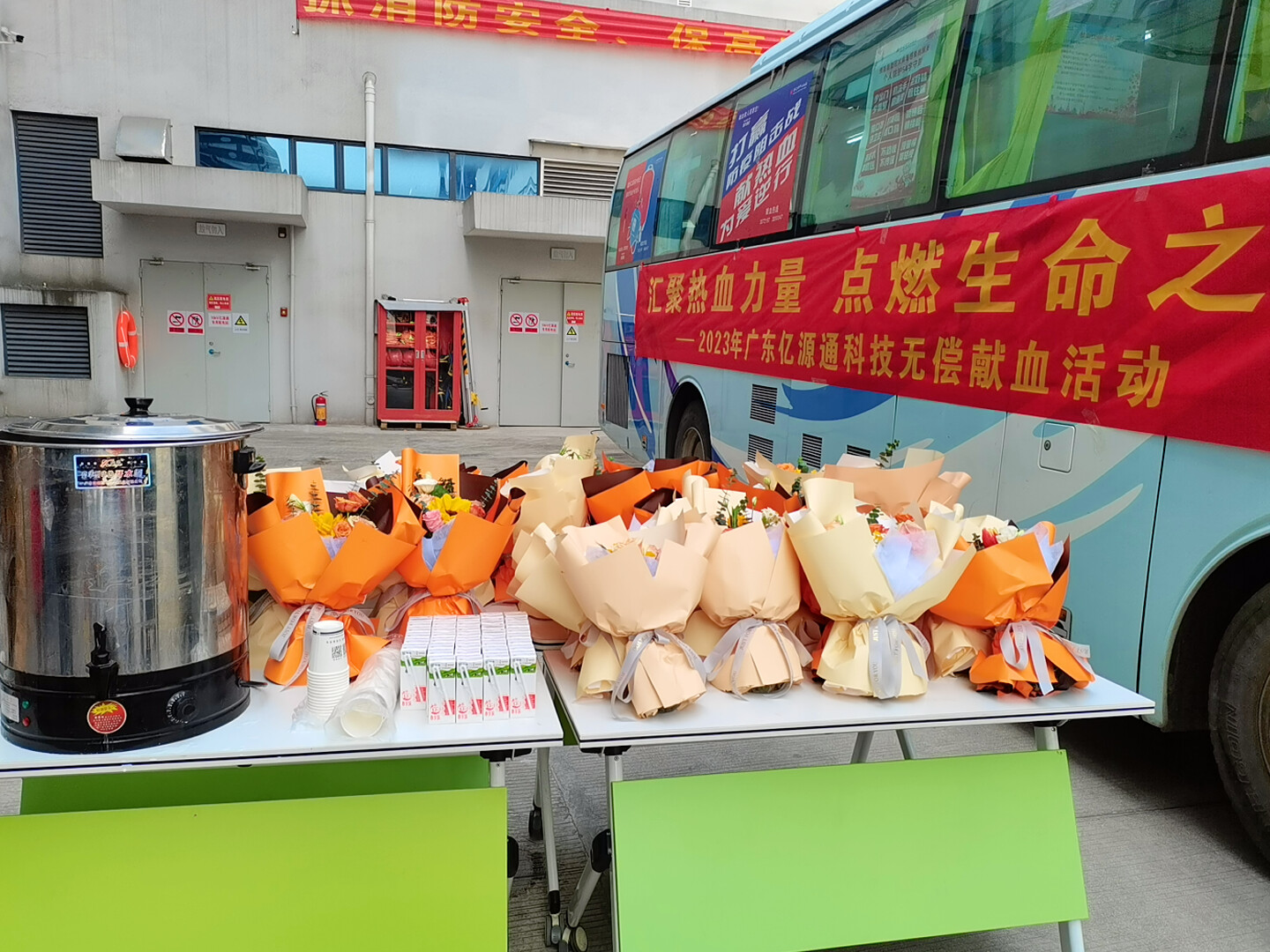 最后,感谢亿源通科技贴心的服务,为现场献血者们精心准备了红糖水、牛奶、矿泉水。