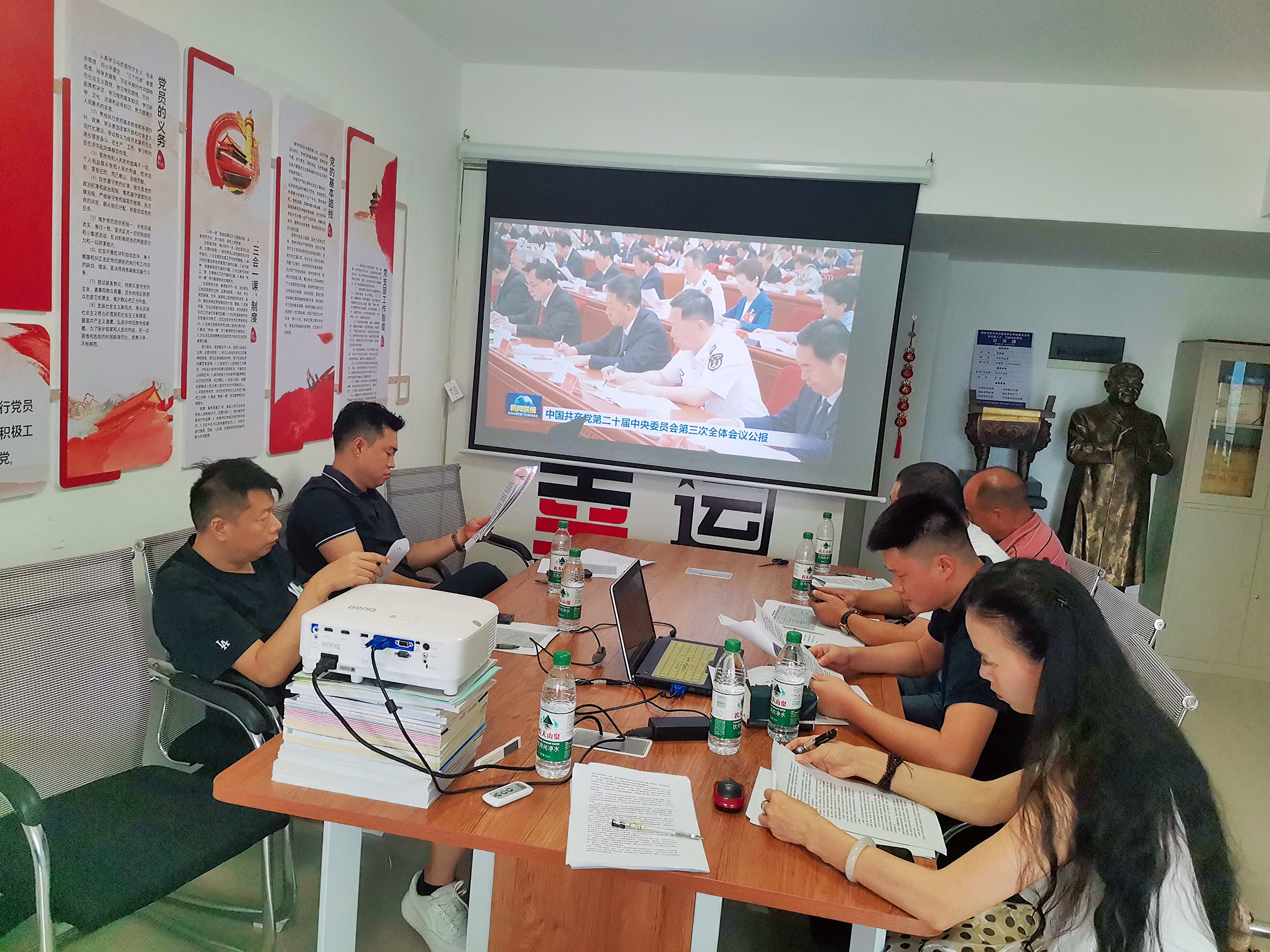 首先大家集体观看二十届三中全会相关报道视频,然后同时逐字逐句学习公报内容的。就公报中的要点,每位参会人员结合自己的工作实际,分别发表看法。