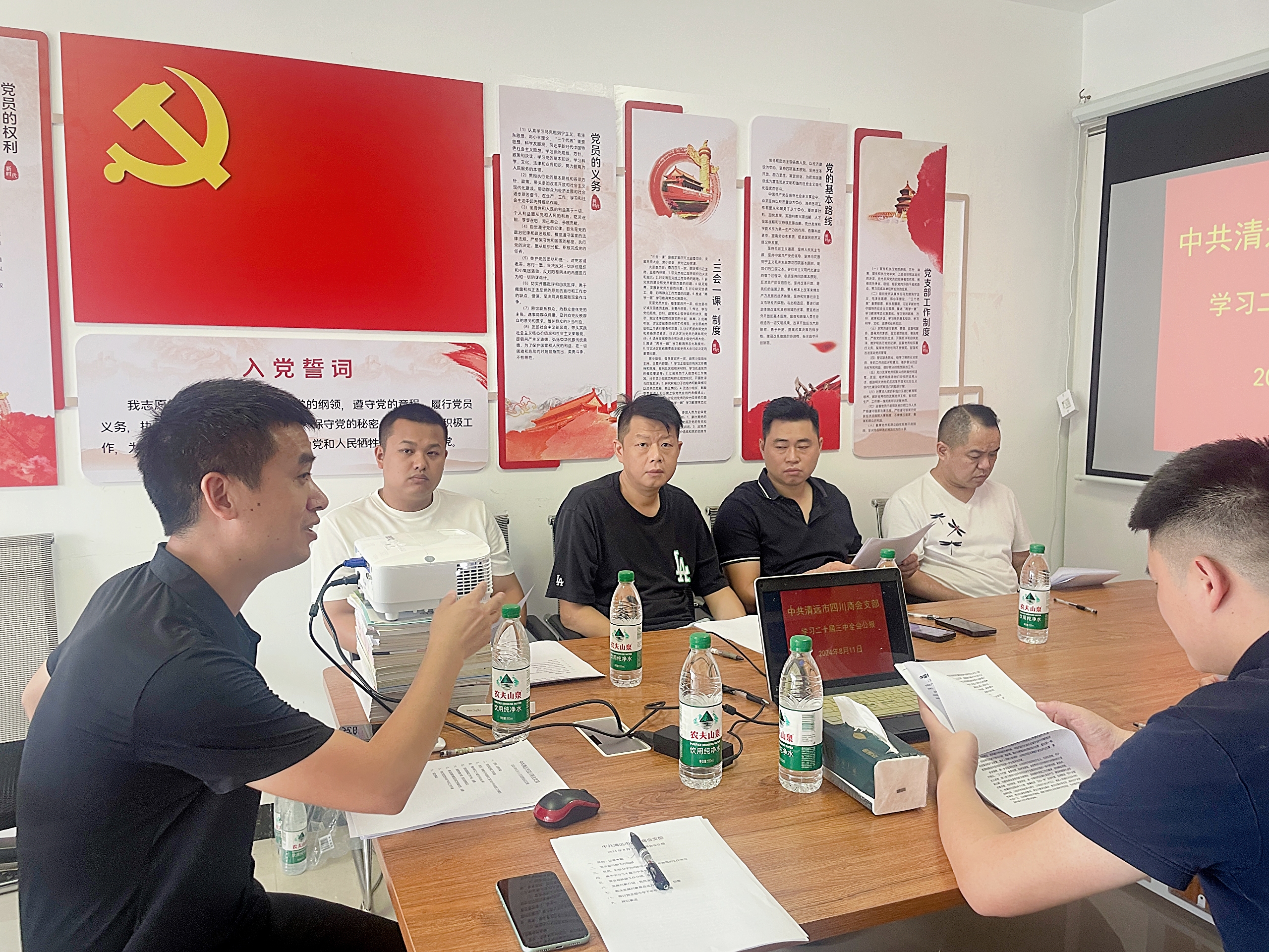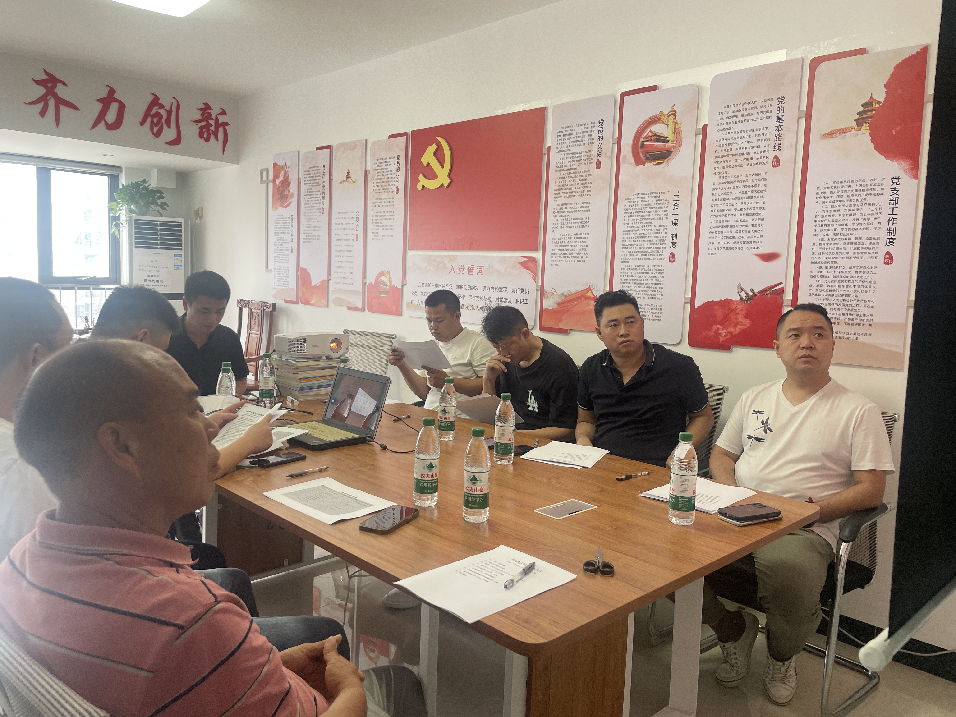 参加本次会议的有正式党员郑昊先、卢远科、孙伟洪、张春林、周科,预备党员吴强荣,发展对象张润平,入党积极分子樊权、彭芹。